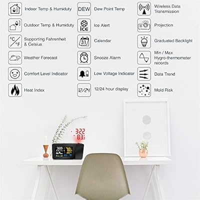 محطة ملونة للطقس مع منبه إسقاط الرطوبة ودرجة الحرارة التنبؤ بالطقس التعبير عن الراحة في الداخل Amazon Ae