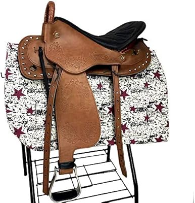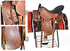 Kdkda New Comfy Gaited Western Pleasure Trail Show Horse Saddle Tack Free Bridle Reins طبعة طوق صدر من جلد البقر النقي سياحين الغربيين سرج التحمل سرج لركوب الخيل Amazon Ae