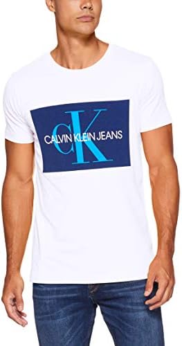 تي شيرت رجالي من كالفن كلاين J307843 أبيض زاه أزرق S S Xxl Amazon Ae