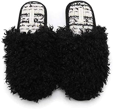 خف أسود منتفخ للسيدات حذاء منزلق مريح منزلق من الفرو مع دعم قوس القدم مع فرو صناعي منفوش دافئ للأماكن الداخلية والخارجية ونعل مضاد للانزلاق ناعم ومسطح ومريح من الفرو 24 5cm Amazon Ae