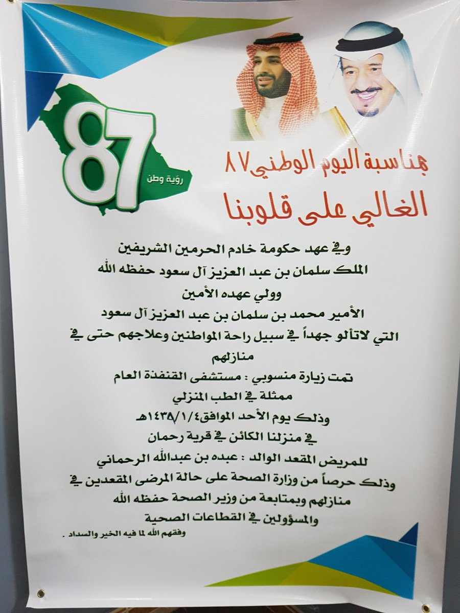 صــ حـ ــة الــ قــ ـنــ فــ ذ ة A Twitteren صحة القنفذة فريق الطب المنزلي يزور مرضى الرعاية الصحية المنزلية لمشاركتهم اليوم الوطني